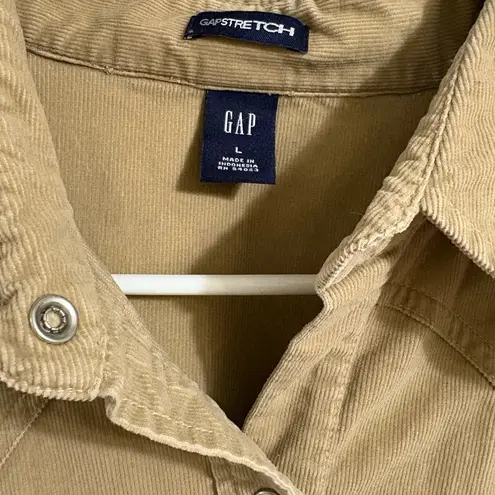 Stylish tan button-up shirt with classic collar and front pockets. Perfect for casual wear.