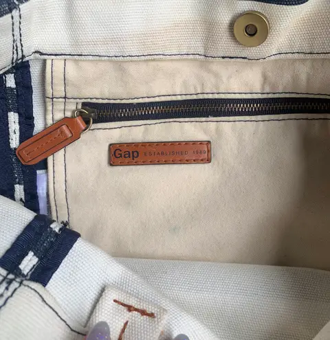 - brand: GAP - striped canvas tote - good preowned condition. Few little stains on inside/ outside (... Show more