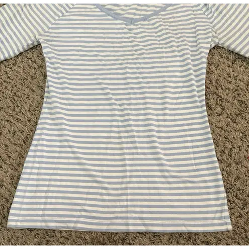 Gap Women's White Blue Stripped Quarter Sleeve Top Size Medium 25" length 17" pit to pit