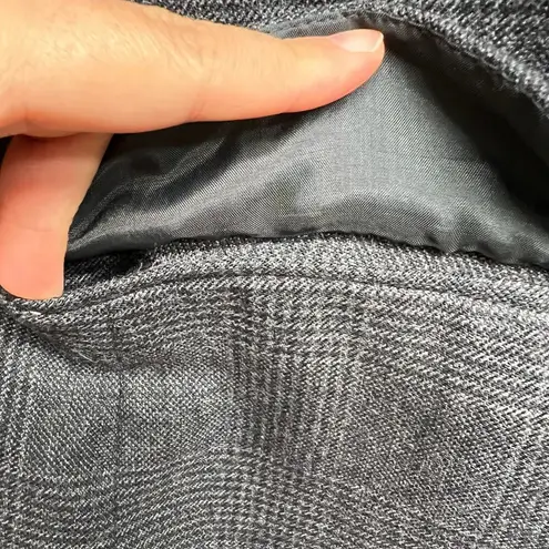 Gap women's gray plaid blazer jacket. V-neck. Button front closure. Long sleeves. Buttoned cuffs. Po... Show more