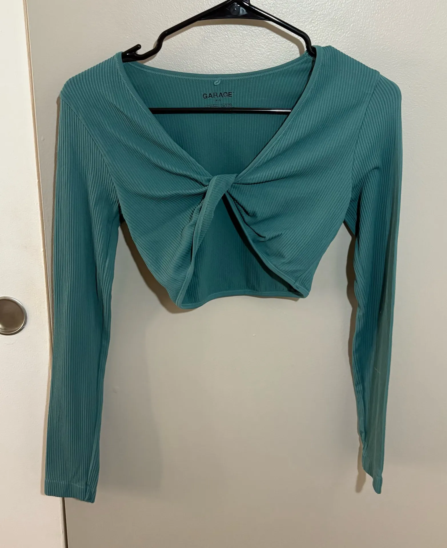 Garage Green Seamless Long Sleeve Crop Top Ribbed material, criss cross front Barely worn, in exce... Show more