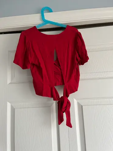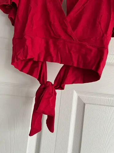 red wrap front crop top super cute keyhole cutout in the back ties in the back size xs, NWT