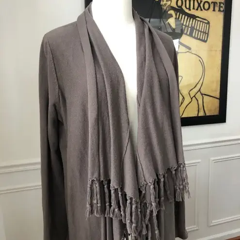 Long open front tassel fringe cardigan from Garnet Hill in a mocha/hot chocolate color. Gently preowned with no flaws. Bundle and save. I have over 1000 listings and combine purchases up to 5 pounds are the same flat rate shipping. It’s a great value!