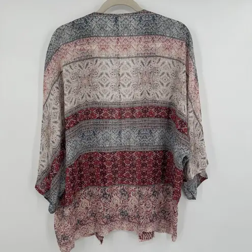 Garnet Hill Kimono Womens Small Red Blue Sheer Silk Boho Open Front Lightweight Condition: Gently w... Show more