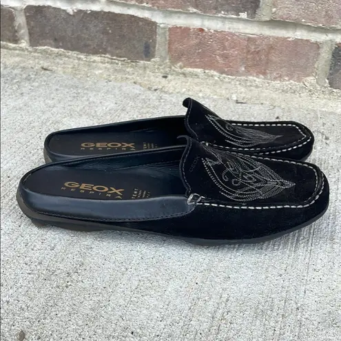 GEOX Womens Black Embroidered Suede Leather Mules Flats Size 38/7 - $41 - From Bri
