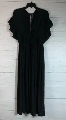 Get ready for the perfect beach party in this ruffle cover up. has an attracted deep V-neck with self-tie string at back, sophisticated flare ruffle sleeves, and drawstring at wait. The best bit is the side pockets are the best house for the seashells. - Deep V-neck - Flare ruffle sleeves - Self-tie string at back - Drawstring at waist - Side pockets - Button down closure - Not lined - 100% polyester - machine wash cold one size fits S-M Black - $15 - From kenia
