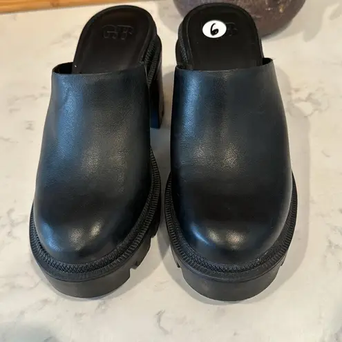 Gianni Bini End-Game Leather Chunky Lug Sole Mules Platform Y2K Heel black size 6 casual office care... Show more
