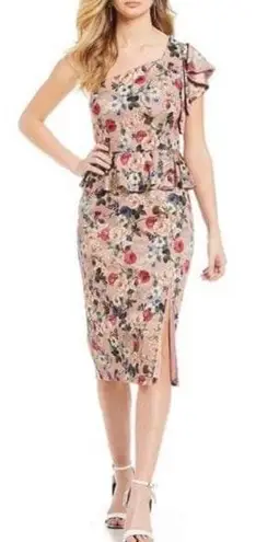 NWT Gianni Bini Danielle Floral Peplum Dress Sz 8•Pink Floral Print •One Shoulder neckline with Ruf... Show more