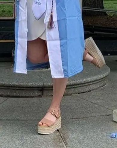 Platform espadrille sandals with muted blush color straps Comfiest heels I’ve ever owned! No scuffs... Show more
