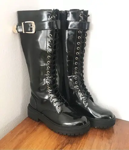 Gianni Bini "Skyscraper" Vegan Patent Leather Lace Up Knee High Boots Condition: New Without Box -... Show more