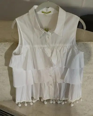 Gianni Bini White Talita Blouse Medium NWT Pom Pom Sleeveless Medium New With Tags Sleeveless W... Show more