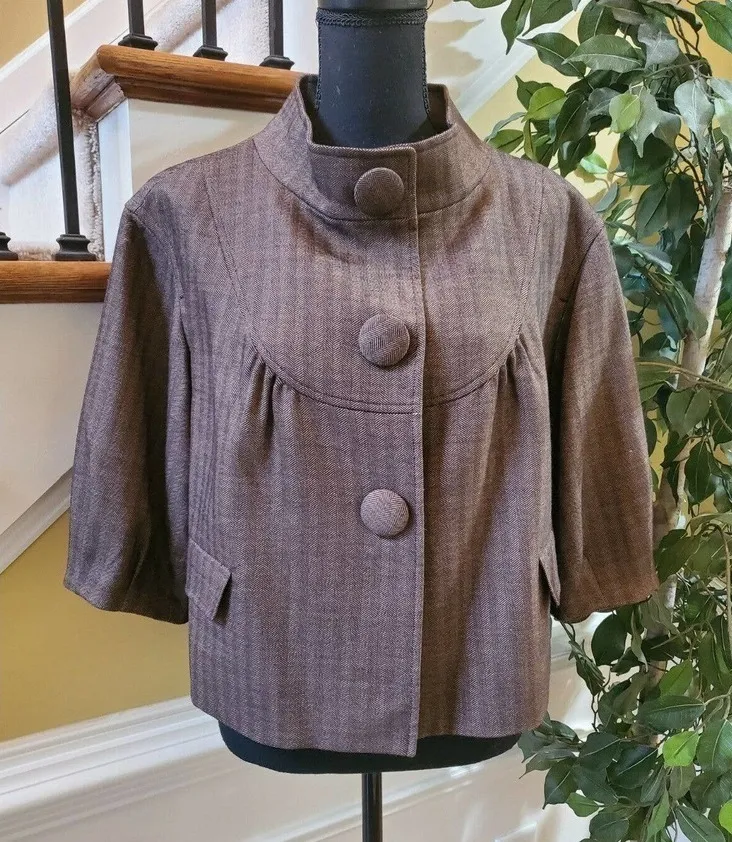 GIANNI BINI brown tweed wool blend elbow sleeve jacket Small. Condition is "Pre-owned". Shipped with... Show more
