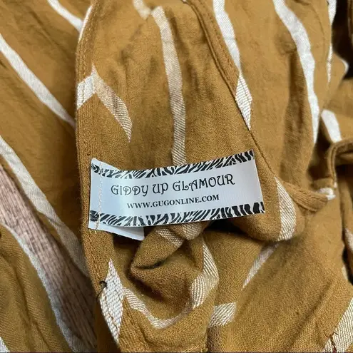 Giddy Up Glamour Striped Romper Vertical striped romper with large button down chest, can be paire... Show more