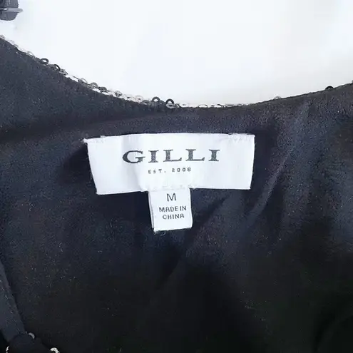 GILLI Sequin Leopard Print Crop Tank Top Camisole Black Silver Adjustable Size M Size M - $20 - From Mari