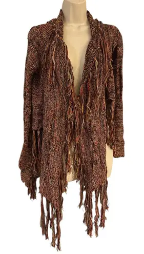 BKE Gimmicks Open Fringe Cardigan Sweater Womens Medium Multicolor Boho Knit - $36 - From T