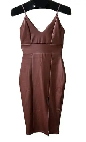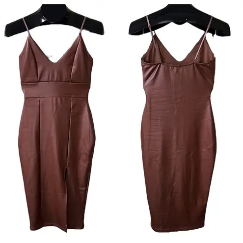 Glare faux leather bodycon dress with side slit Brown - $30 - From Stacey