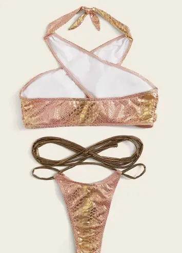 Gold & Pink Snake Print Wrap Bikini Size M - $16 - From Taylor