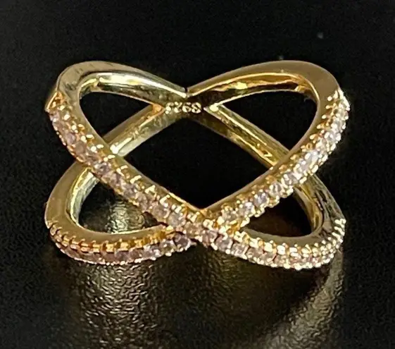 Gold Austrian Crystal Criss Cross X Ring Size 9 - $18 - From Nancy