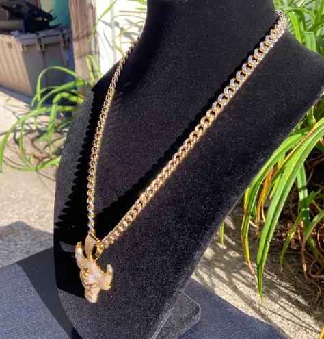 WAS $125 NOW $60 FOR LIMITED TIME! Limited Quantity. Get yours Now! Includes Both Chain and Pendant! High Quality Gold Chain 14k Gold Layered Cuban Chain and Prong Set Icy Bull Pendant Set. So icy it will Blind Everyone! FREE Shipping! Chain is: Stamped 14k • 8mm • 24in Durable Tarnish Resistant Coating. Gold filled/layered is a layer of real 14k gold. It is more valuable and durable then regular plating • High quality and durable. Has good weight to it.