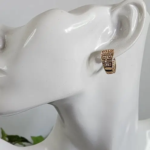 Gold Plated Greek Key with Zirconias Huggie Hoop Earrings - $19 - From Elsa
