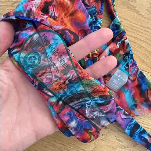 Gonza Swim - Virginia Triangle Bikini Top & Side Strap Bottoms in Purple Red & Green KR0425-H5 Size : Bottoms M ; Top is S Color : Purple Red Green Condition : Like new Matching set Adjustable ties on top Bottoms are stretchy on sides