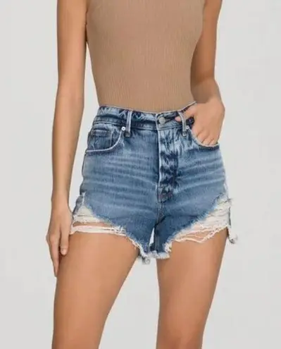 Good American brand. Size 6 or 28. - High rise - Distressed fabric at thighs - Button fly closure -... Show more