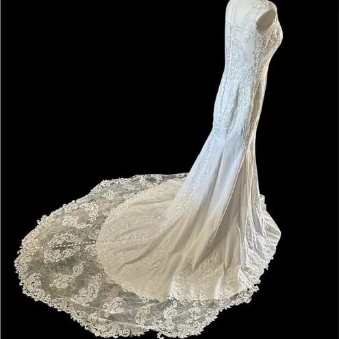 This dress is even more gorgeous in person. Rounded train and zip closure with button accent detail along the zipper. Pit to Pit measurement approximately 19” Waist measurement approximately 16” Hip measurement approximately 19” Front length measurement from shoulder to hem approximately 63” Back length included train approximately 98” Measurements are done as flat lay. Please ask if you need more. NWOT FAST SHIPPING BUNDLE AND SAVE Smoke FREE Dog Friendly Home and No Cats