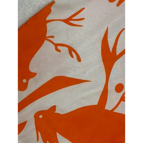 Get ready to turn heads and confuse birds with this wildly fabulous jumpsuit! Features: - Bold orange tropical bird and palm print that'll make you feel like you're on a permanent vacation. - Wide-leg pants for maximum comfort and dramatic flair. - Ruffled sleeves that say, "I woke up like this... and I look fabulous." - Deep V neckline with a playful tie detail to keep things interesting. Perfect for casual brunches, dance parties, or just pretending you're on a tropical island while stuck in the city. Warning: Wearing this may cause compliments and spontaneous dance-offs. Please notate measurements in photos. Please notate flaws on photos. I tried to find everything. It is satin & has been dry cleaned.