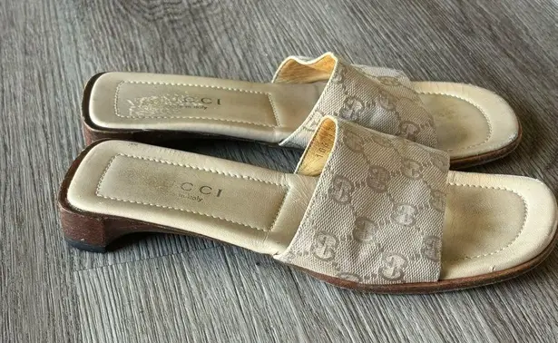 Authentic Preowned Light cream/tan color Size 6.5 Monogram GG Logo on woven canvas No box or shoe ba... Show more