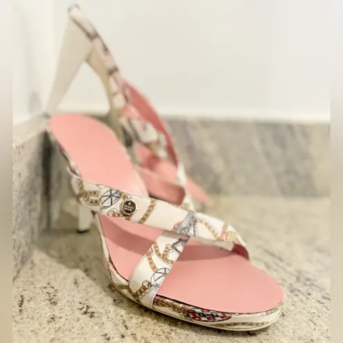 Step out in style with these elegant pink and white sandals. Perfect for any occasion, these shoes o... Show more