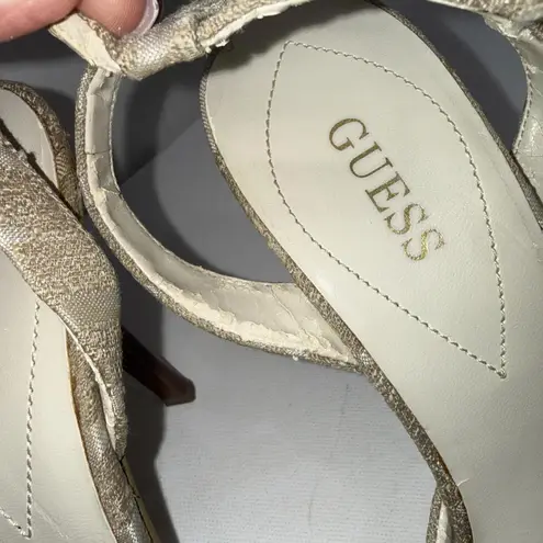 Guess Beige Monogram Pump Stiletto Heels Ankle Strap Y2K VTG Pointed Toe Shoes in USA Women’s Size 9... Show more