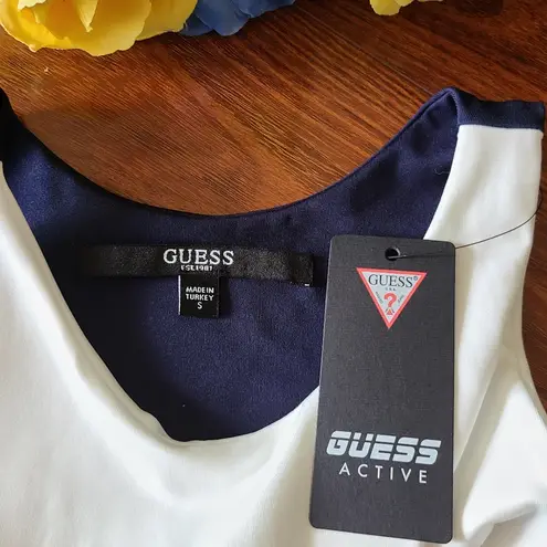 BNWT Brand: Guess Color: Blue & White Size: Small Style: Sides Stripe and peekaboo front sports bra... Show more
