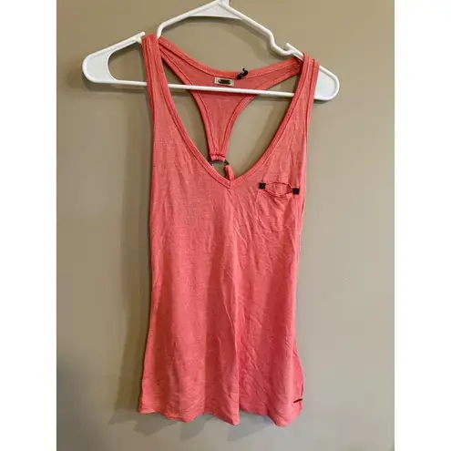Embrace effortless summer style with this vibrant Guess coral pink racerback tank top. Feel the sof... Show more