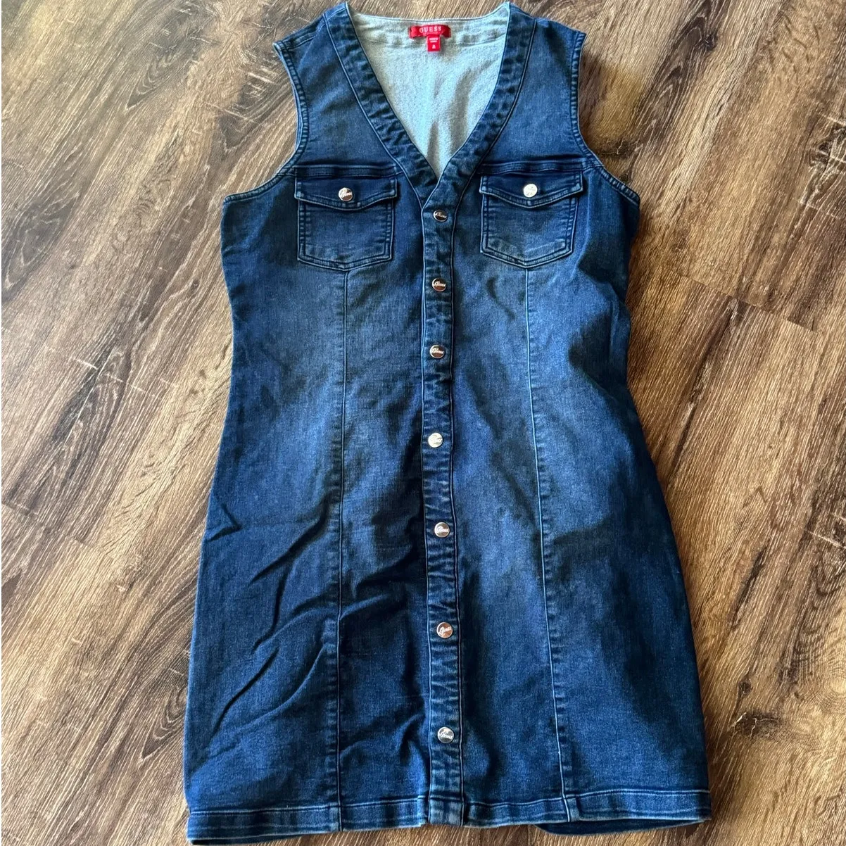 This is a lovely Guess blue denim jean dress in a size Medium. It features a tank top style with a... Show more