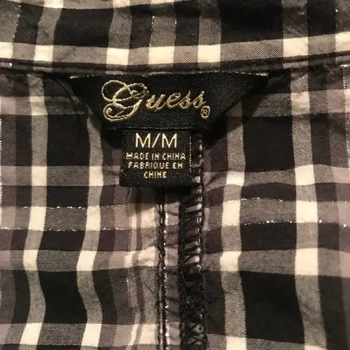 Size M (runs small). Black and white plaid design with silver threading for sparkle. Seams are sligh... Show more
