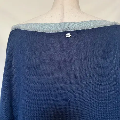 Blue Guess Stripe Long Sleeve Pullover Knit Sweater with Silver Metallic in Stripes Solid blue back,... Show more