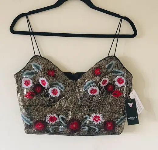 Guess Topeka embroidered sequin cami top Fabric type 96% Polyester, 4% Lycra Spandex Care instructi... Show more
