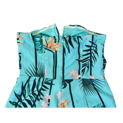 romper, tropical, strapless, tie front, floral, palm print, summer, beachwear, vacation, resort, festival, lightweight, boho, chic, casual, party, trendy, island, getaway, travel