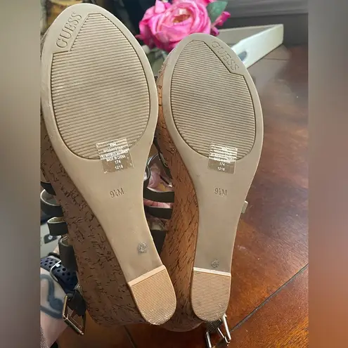 Amazing Guess wedges Green straps Cork/tan wedge heel Size 9.5 EUC bin SH13 Weight 1 lb 2.4 oz