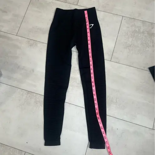 Sleek black leggings with textured design. Ideal for workouts or casual wear. Comfortable and stylis... Show more