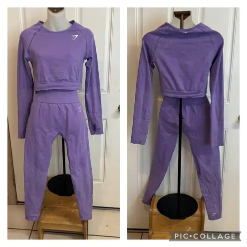 Small Gym shark purple Vital seamless 2.0 long sleeve crop top and legging set. In EUC! Top: leng... Show more