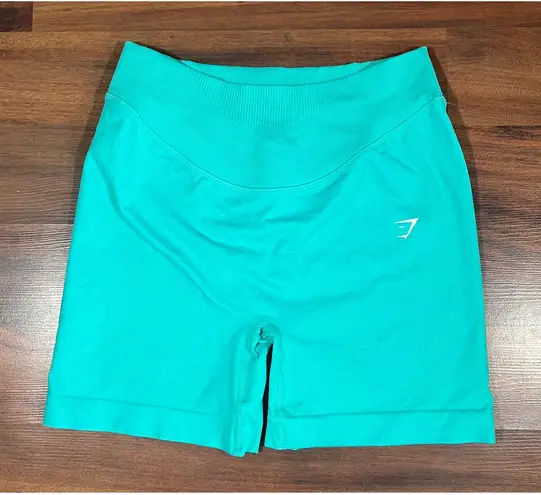 Keywords: Gymshark, training shorts, workout shorts, high waisted shorts, seamless shorts, activewear, gym shorts, exercise shorts, athletic shorts, turquoise shorts, women's shorts, size L shorts, ribbed waistband
