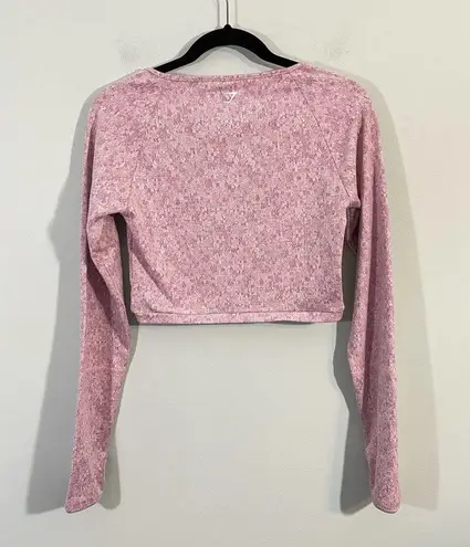 Gymshark Women’s Pink Textured Fleur Long Sleeve Cropped Top - Size L - Excellent pre-owned condit... Show more