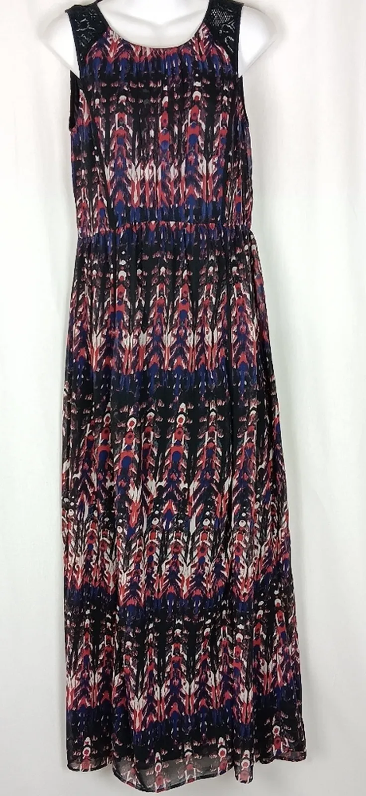 Sleeveless Pleated Crochet on shoulders Two front slits Back zipper closure