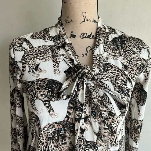 Long sleeve big cat print neck tie blouse. 18” underarm to underarm 19 1/2” shoulder to hem Exce... Show more