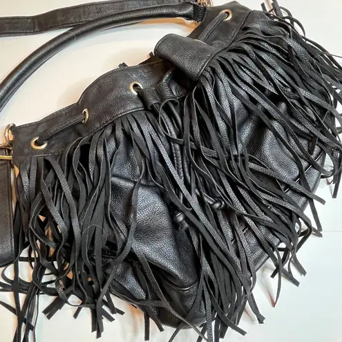 H&M Black Leather Fringe Bucket Bag Handbag Crossbody Boho Carry-All Drawstring - $27 - From Karen