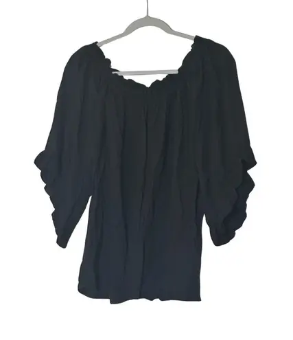 Elevate your style with this elegant black off-shoulder top featuring chic ruffle sleeves. Perfect f... Show more