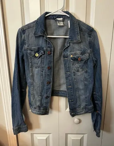 This is a pre-owned H&M women's blue denim jean jacket, size US 6 (EUR 36, CA 6, MX 6). The jacket f... Show more