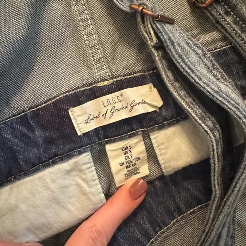 These blue denim overalls from H&M showcase a classic wash with natural fading and distressing for a... Show more