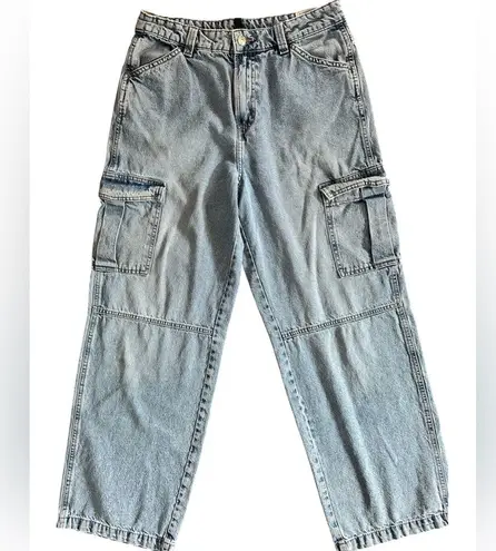 Vintage-inspired H&M Divided cargo jeans in a light wash denim. Features a mid rise, relaxed straigh... Show more